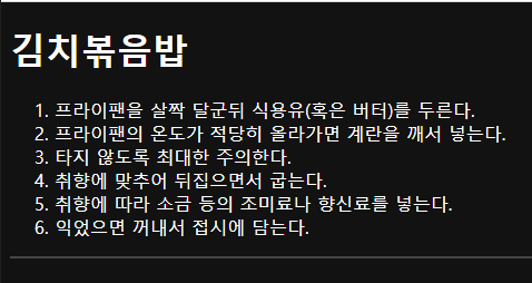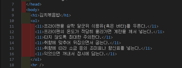 순서가 있는 목록을 표현할 떄 사용한다. type 속성으로 글머리 기호를 변경할 수 있다. (ex. 계란후라이 만드는 방법)