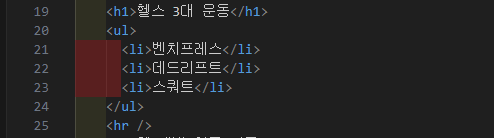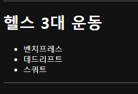 순서가 없는 목록을 표현할 떄 사용한다. (ex. 데드 리프트, 스쿼트, 벤치 리프트처럼 순서가 없는 목록)