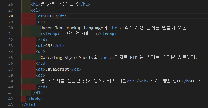 - < dd > Definition Description (하위 태그)