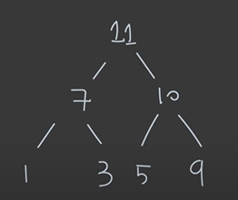 위 사진을 배열로 나타내면 [11 , 7, 10 , 1, 3, 5, 9]와 같다.