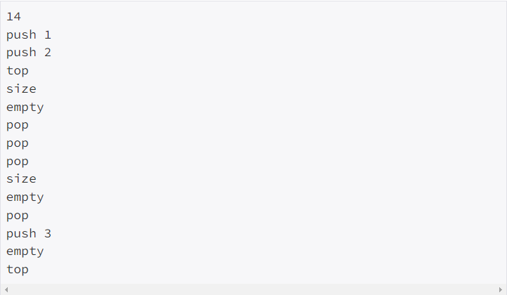 - pop: 스택에서 가장 위에 있는 정수를 빼고, 그 수를 출력한다. 만약 스택에 들어있는 정수가 없는 경우에는 -1을 출력한다.
