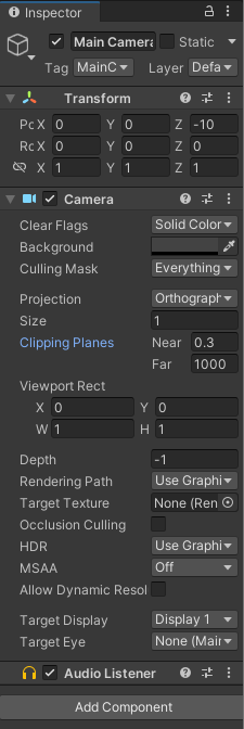 Main Carmera를 누르고 Inspector 창에 나타난 것들 중에,