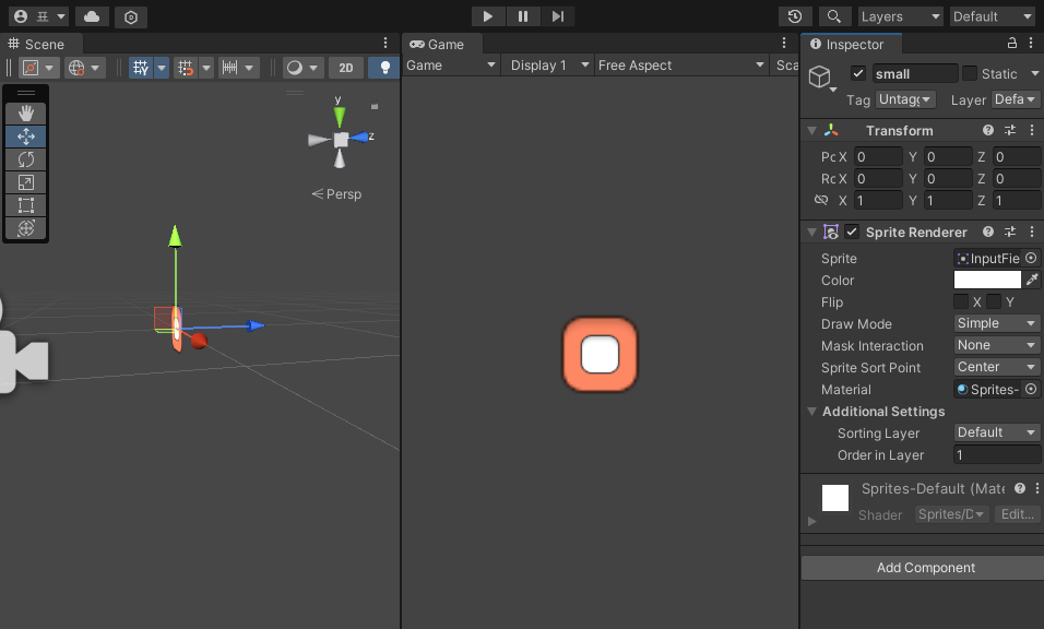 그러므로 원하던 Sprite를 불러와서 SpriteRender의 Sprite에 넣으면 된다.