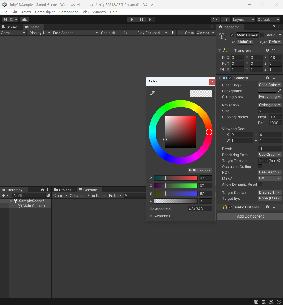 보는 바와 같이 2D 프로젝트를 하나 만들면, 다음과 같이 생성된다.